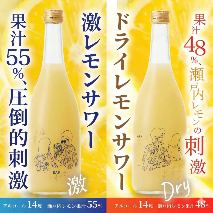BARヨー子の人気メニュー、食事に合う「ドライレモンサワー」と、強烈な果実感が癖になる「激レモンサワー」。公式オンラインショップでしか手に入らないオリジナルステッカーがついた、レモン好きのための特別なセットです。
