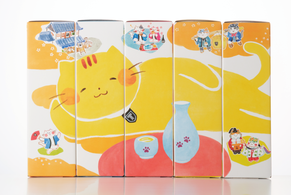 側面のイラストには新嘗祭の神主にゃんと巫女にゃんの姿も描きました。