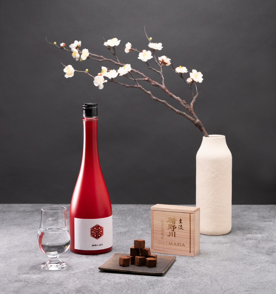 シルスマリアの生チョコは、チョコレートの温度をじっくり時間をかけて上げていき、生クリームも同じ温度に合わせたところで混ぜ合わせることにより、特有の滑らかさが実現します。そこに、チョコの相性が良い「主流」をセレクト。ふわりと吟醸香が漂うミルキーでとろける、食べやすい生チョコが誕生しました。