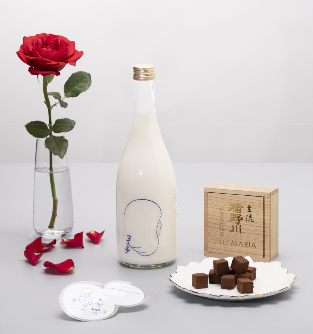 ヨー子 720ml×1本、楯野川×シルスマリア 生チョコレート×1箱、ヨー子 メッセージステッカー×1枚