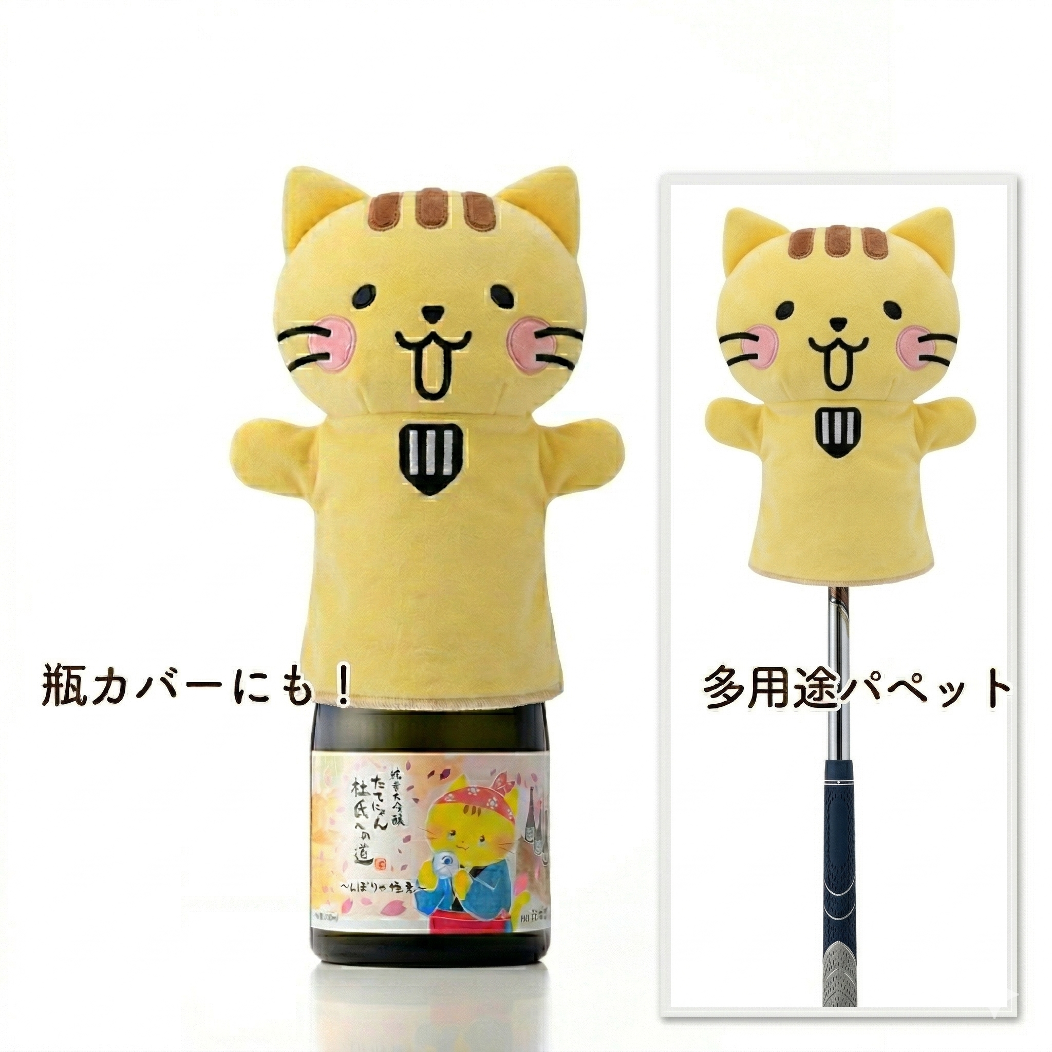 手を入れて遊ぶのはもちろん、瓶のカバーや、ゴルフクラブのカバーにも使っていただける可愛いパペットです。